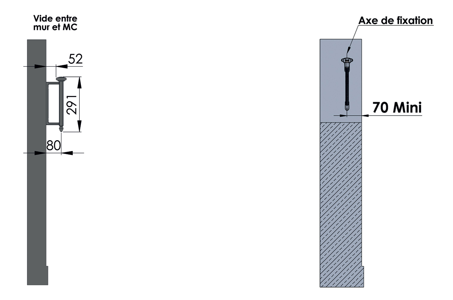 Structure : Equerres aluminium fixées sur une main courante 23x55mm et maintenues dans le mur par vissage.