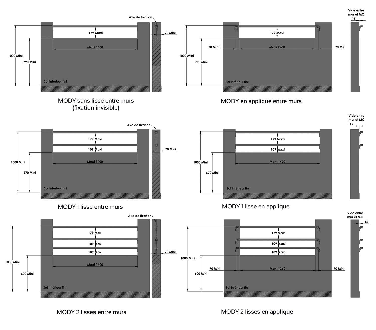 Coloris : Noir 9005 Sablé, Blanc 9010 Brillant, Gris 7016 Sablé. Sur mesure.